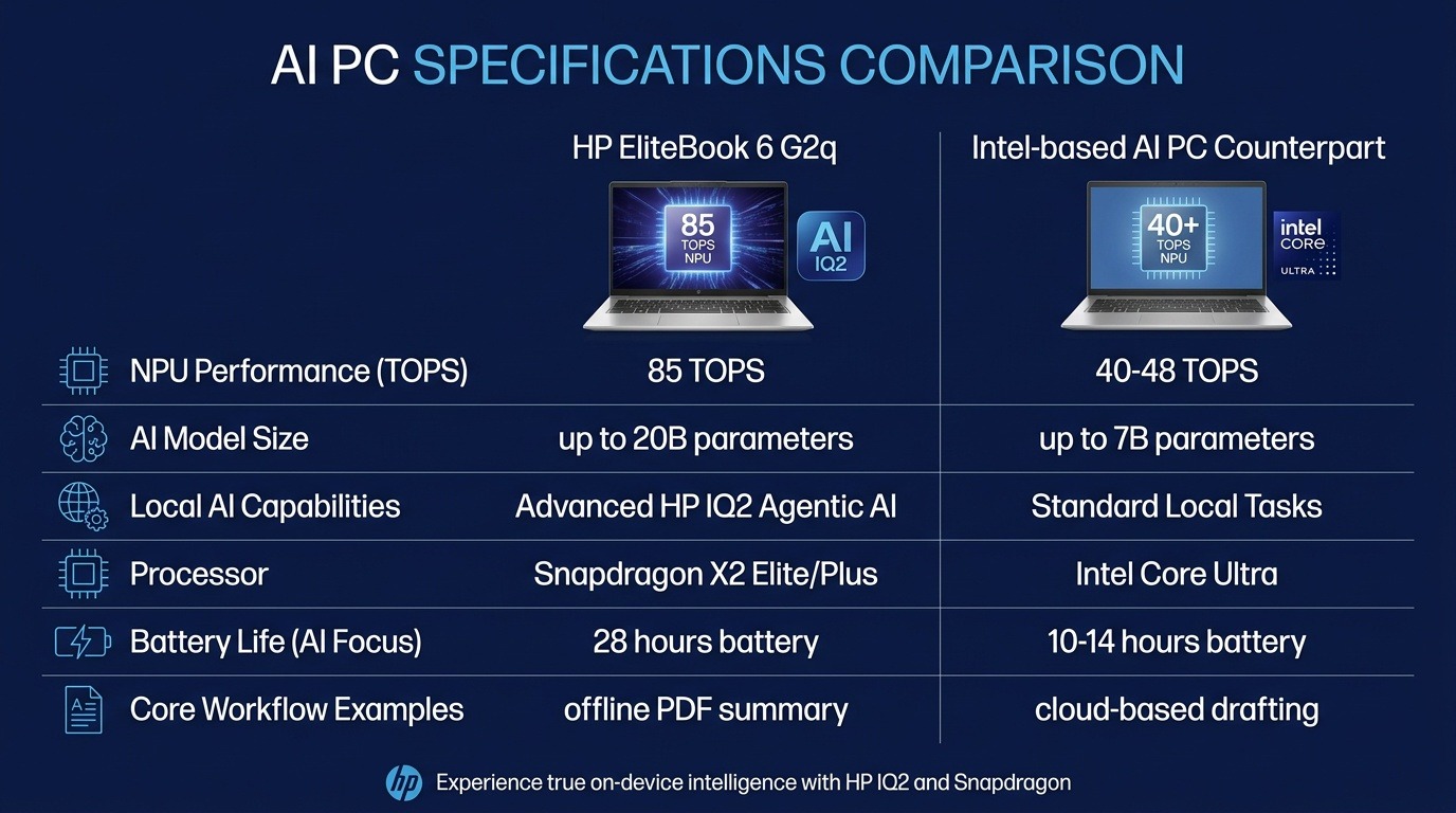 The hardware is no longer the bottleneck. The HP EliteBook 6 G2q is being positioned as perhaps the most powerful true AI PC ever created. HP didn’t just add a sticker; they built a platform capable of sustaining advanced, agentic AI workloads locally.